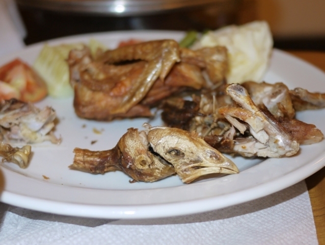首の肉がまた美味いのだが,なかなかこそぎきれなくて,時間切れ.鶏冠だけで勘弁してもらった.