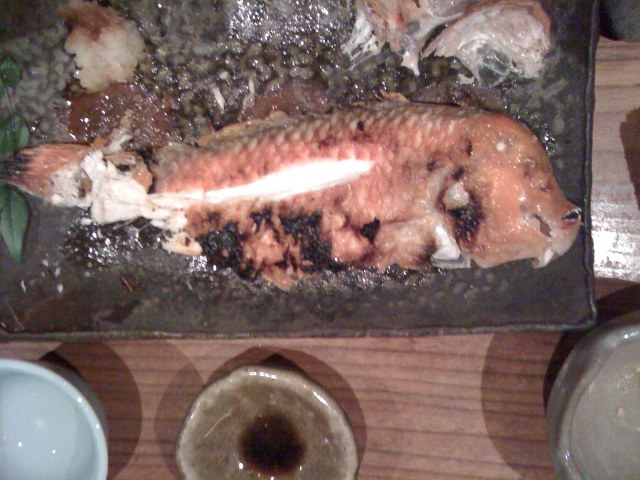 お造りは,マグロ,鯛,太刀魚,ボタンエビ,ウニ(利尻のバフン),皮付きホウボウなど.エビHeadはあとで焼いてくれて完食.おっとハモも店長裁量で出てきて,好.つなぎに野菜の炊き合わせを試したが,良し.焼き物を相談して,えびす鯛に.最近はなかなか入らなくなって困っているらしいが,今日はラッキー.このお店,和歌山の地魚を主体にそろえているそうだ.で,仕上げは土鍋で炊き上げたたっぷりの鯛めし,半分食べて,残りはおにぎりにしてもらって,お持ち帰り.うまし.