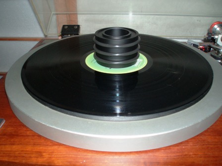 アナログ・レコードの再生では,ターンテーブル/マット/レコード/カートリッジの針/ダンパー/カートリッジ・ボディ/トーンアームという具合に,上下に多くの機構が重なっている.音溝から振動をとりだすプロセスでは,これらの機構の剛性や振動・減衰特性が影響することは明らか.でもカートリッジやトーンアームに比べると,ターンテーブルの重量・剛性・慣性は桁違い.なので,ターンテーブルで音が変わるって話には消極的である(否定はしないけど).再生音には,カートリッジとトーンアームの組み合わせが最も影響が大きいと考えている.で,何もしないとレコードはターンテーブルに載っているだけなので,自重と針が鉛直上方から作用しているわけである.
