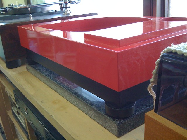 あちこちチューンして自信と自慢の一品になるはずなのである.今日は塗装の具合を見るのと,ターンテーブルシートをどうするか相談したいとのことで,店に行って来た.でシートは透明アクリルでいくことに.おぉ,楽しみじゃ.