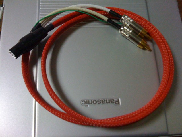 で,日曜日にはオヤイデに注文していたPhonoケーブルキットが到着した.外装をターンテーブルにあわせて赤いチューブに変更,あとは標準のキットのままである.なのだが,Webで紹介されている製作例の材料が皆揃っていると思いきや,RCAプラグ側に使われている外装チューブと,5P-Phonoプラグ側の端末処理に使われている3mmφの収縮チューブ(赤と白)が含まれていなかった.注文時によく確かめておけばよかったのだけど・・・.また買い足すのも面倒なので,手持ちの材料で間に合わせて,1時間程度の作業で完成した.
