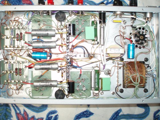 で,出力管はWE101D,出力は1.5W位欲しいし,球にあまり無理をかけたくないのでppにする.ダブルpp構成で,初段のインプットトランスで位相反転することに.ドライバー管には6SN7,いずれは5692の赤ベースにと思っている.せっかくWE古典球をつかうのだからOPTも一捻りしたいと思い,思案していたところ,アンディクスの石井さんが,“こんなのも作れるよ~”と紹介してくれたのが,オリジナルOPTのパーマロイ版.値段は覚えていないが,格安だった.ついでにPTも作ってもらった.またそのころ,札幌のウェスタンサウンド・アネックスでWEの小さなチョーク・トランス(2HDCR=170Ω)を見つけて2個購入.これは各チャンネルOPT1次側のセンターに1つずつ直列に入れることにした.B電源 -> CH-> OPTのセンター(B+)という具合.これで交流バランスを改善しようというわけ.インプットトランスは,はじめはアンディクスにあった小さな黒い塗装の軍用トランスを使ったのだが,fレンジが狭くて気に食わず,同じサイズで手持ちだったUTCH5(115k295k)に変更して現在に至る.