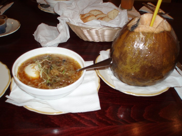 パラマリボには,インドネシア系住民,インド系住民に呼応して,インドネシア・レストラン,インド・レストランがたくさんある.まずはインドネシア系から.前置きがすっかり長くなってしまったが,はじめのお題はサオト.パラマリボの市街を流れるスリナム川河岸にある公園にいくつかの屋外食堂(屋台以上,レストラン未満)が開いている.多くはインドネシア系料理を出す.