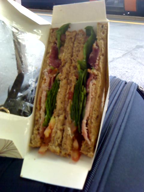 列車移動中の駅で買ったサンドウィッチで,その疑心暗鬼はさらに深まる.なんでこんなマズイものに4£も払わにゃならんのだ?どうマズイかっていうと,ベーコンがあまりにもしょっぱくて,そのベーコン自体も塩味しかしない代物で,ほかの野菜やマヨネーズ風ソースなどの味がしない.これを毎日のように食べるって,単純,単調,ただしょっぱいだけ,どこまで行っても,いつまでたっても変わらない,暗く単調な灰色の低い空,そんなモノローグな気持ちが頭の中に広がる.エゲレス人の強さの秘密が少しわかったかも.